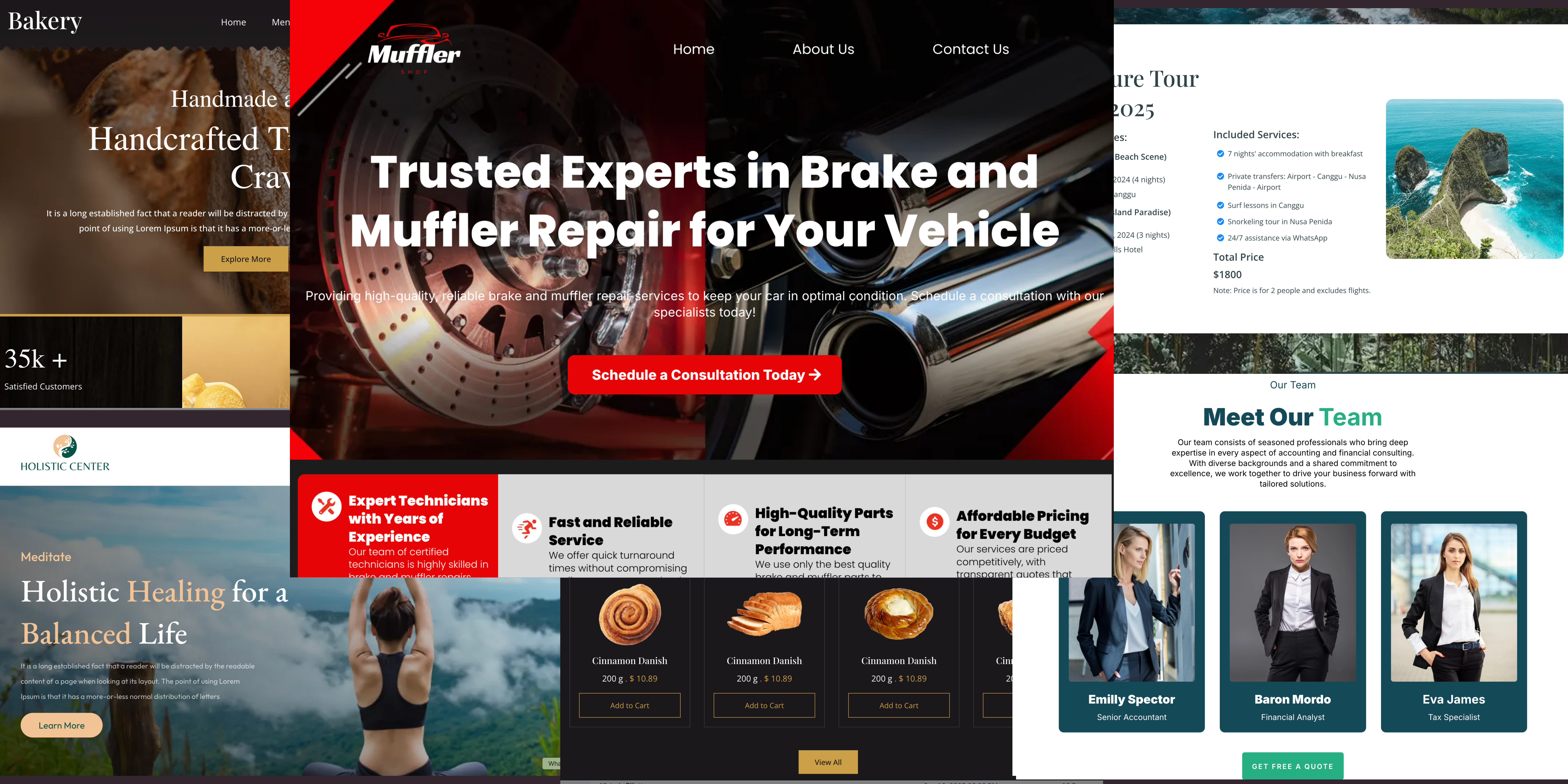 Custom-designed websites tailored to your brand, including homepage, service pages, contact forms, mobile optimization, and SEO setup.