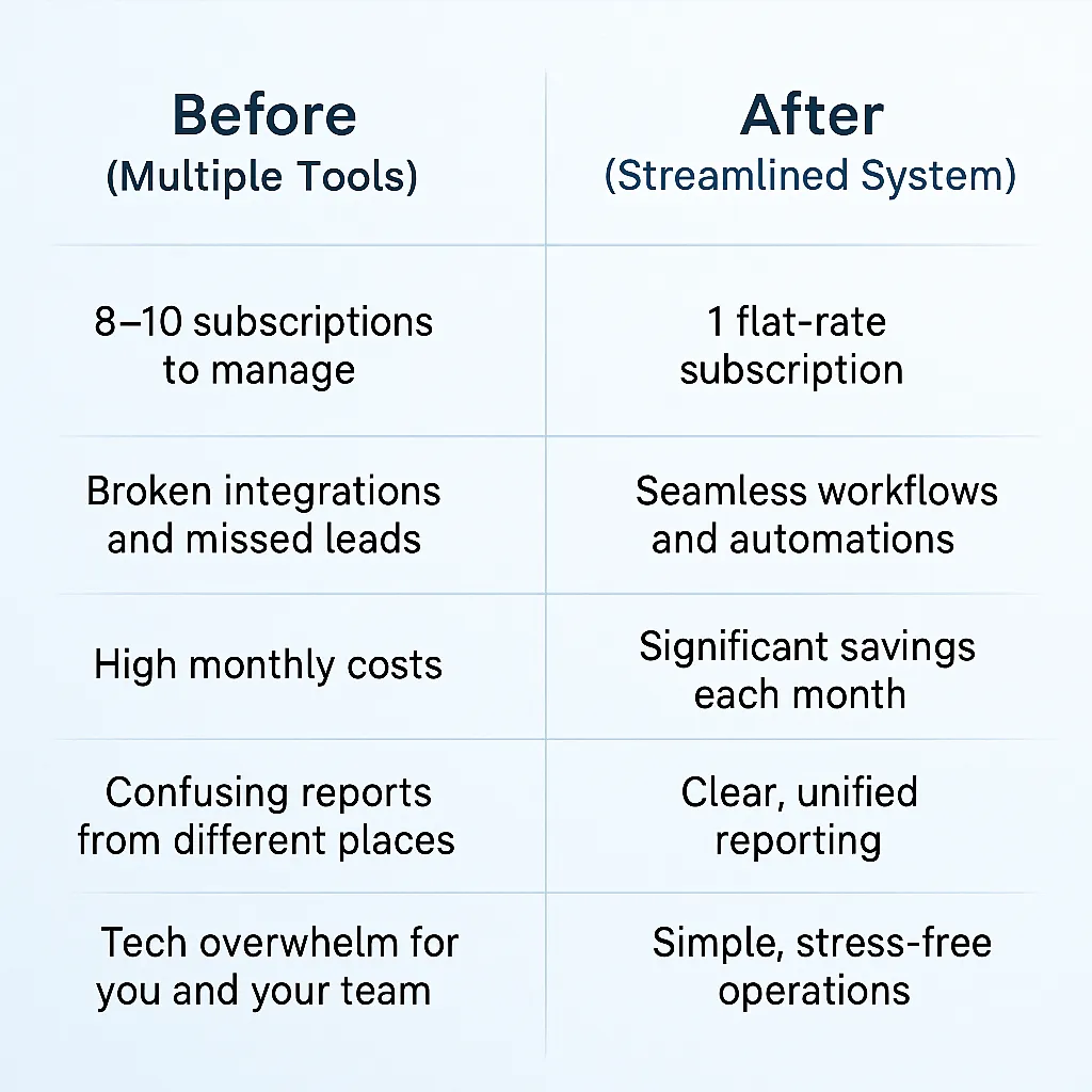 We help hardworking small business owners simplify their days with smart systems and automation. From bookings to reminders, we handle the busywork so you can focus on what you do best serving your customers.